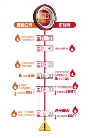 “群租房人员多,用电量大,可燃物品多,加上通道狭窄造成逃生困难,容易造成群死群伤的事故,不可马虎。”消防人员表示,一旦因电器故障或明火导致火灾,群租房的火势在10分钟内就会造成蔓延之势,室内温度突破1000℃,极其危险。